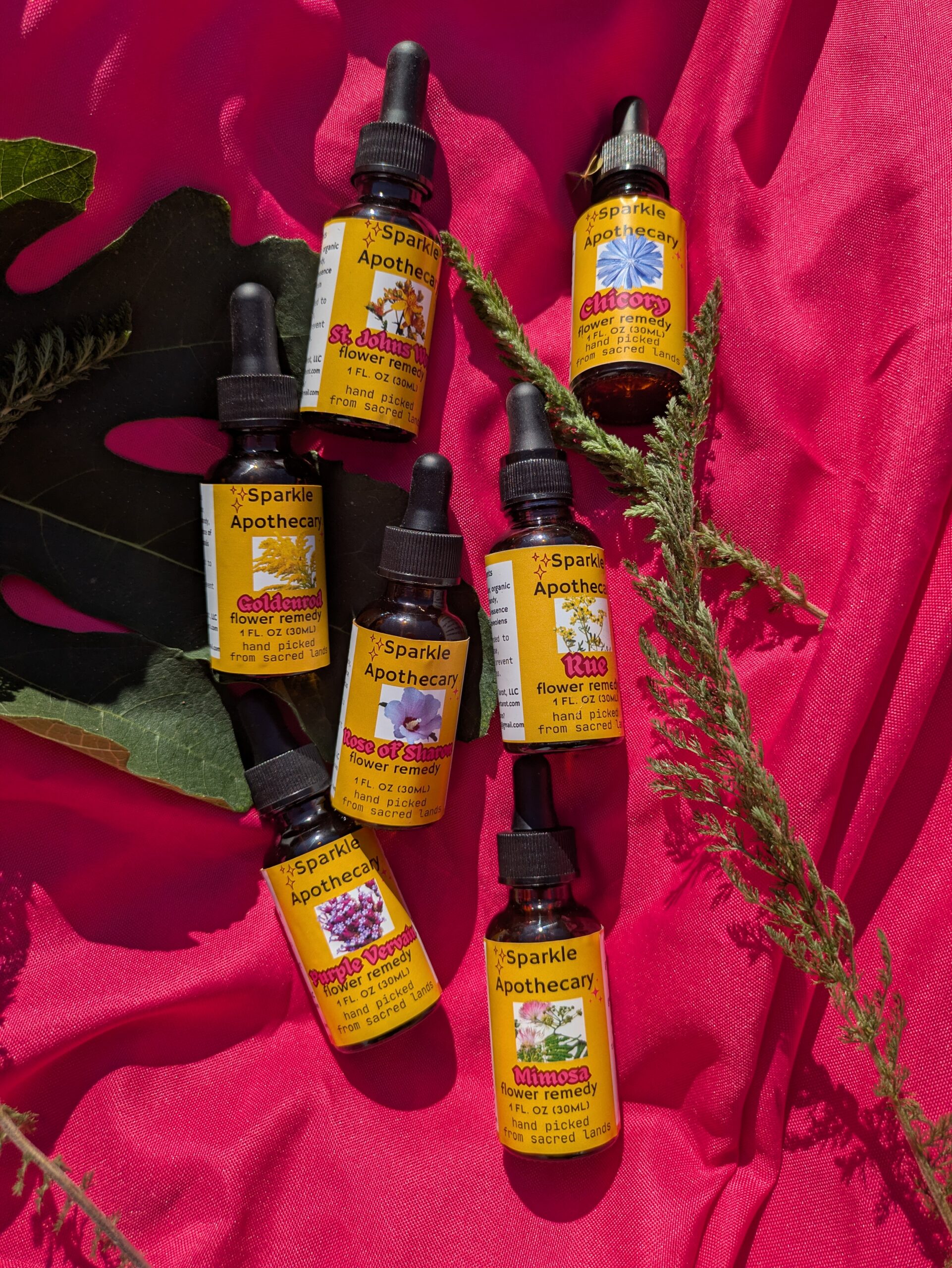 All Sparkle Apothecary products are thoughtfully crafted using the best available components. Plant materials are all local to Portland, Oregon, gathered on sacred lands at the peak of their season. There is ritual and intention to making each product. Each product is processed and packaged using sanitized equipment, using glass and steel containers when available. High quality spring water or distilled water, and organic, local pear brandy is used for tinctures and flower remedies.
